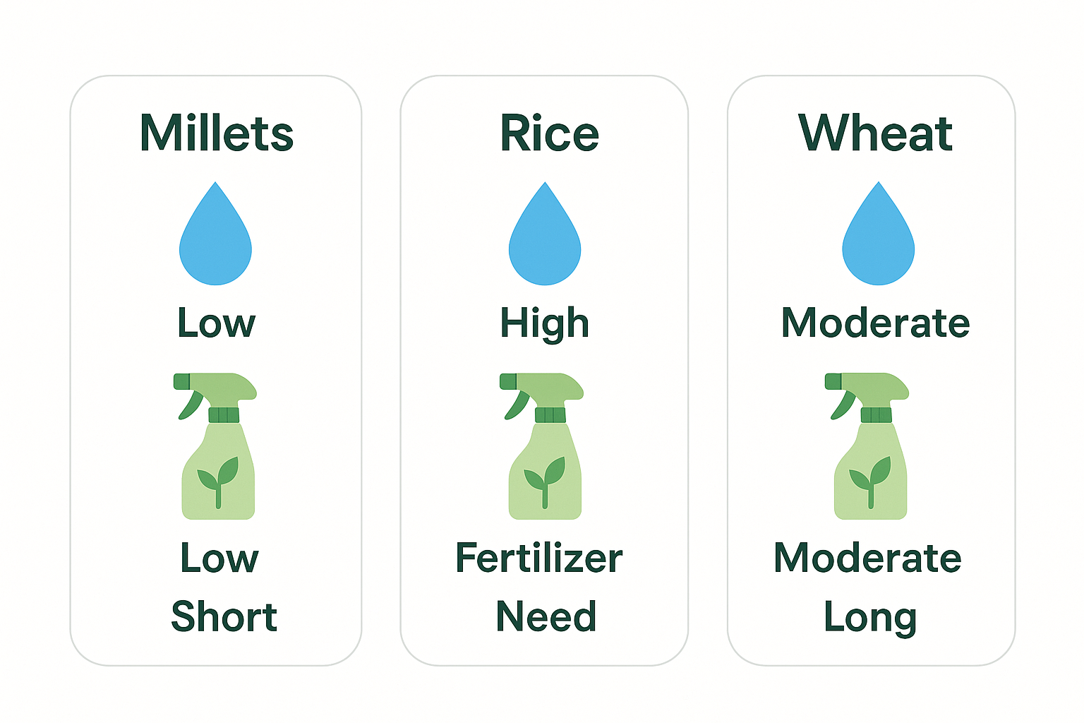 - Farmers can rotate millets with pulses or oilseeds easily.